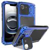 For iPhone 16e Case Aluminum Alloy+Silicone Lens Kickstand Phone Cover with Tempered Glass Film