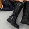 Cowhide~ Genuine leather thick-soled knight boots women's belt buckle boots autumn and winter retro long boots wide tube thin high boots — vásárolj olcsón a Joom webáruházban