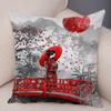 Japán Stílusú Tintás Harcos Párnahuzat Kanapéhoz Otthon Kétoldalas Nyomtatott Dekoráció Gyönyörű Tájkép Lány Párnahuzat Puha Plüss Párnahuzat,(4)