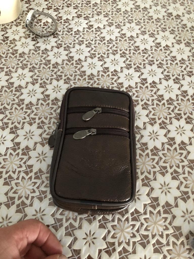 Marsupio da uomo in vera pelle con doppia cerniera, custodia per cellulare, portamonete, tasca