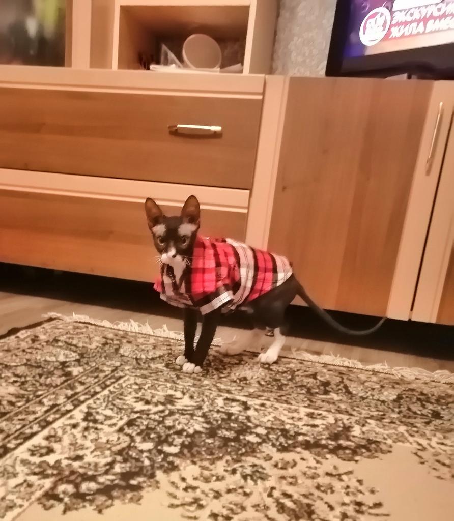 Camicia carina. A Kotyari è piaciuto (mi è piaciuto molto). Con la taglia, ho indovinato: per un gatto medio di 7 mesi prendeva M. Ma se parliamo di un gatto fragile, probabilmente è meglio prendere S, per un gatto adulto, rispettivamente - L. Per quanto riguarda la qualità del prodotto, a prima vista è rimasta delusa, perché nella borsa sulla maglietta si vedevano molti fili che sporgevano in direzioni diverse. Ma quando ho tirato fuori la maglietta dalla borsa, si è scoperto che tutti quei fili sono solo resti di pelo del tessuto e sono facilmente rimossi dalla sua superficie. Le cuciture non sono molto curate, ma date le specifiche del prodotto la qualità è soddisfacente. Quindi, consiglio questo prodotto. Grazie produttore. E Joom, grazie mille per la consegna (sinceramente, non mi aspettavo di ricevere questo pacco nella seconda settimana di guerra).