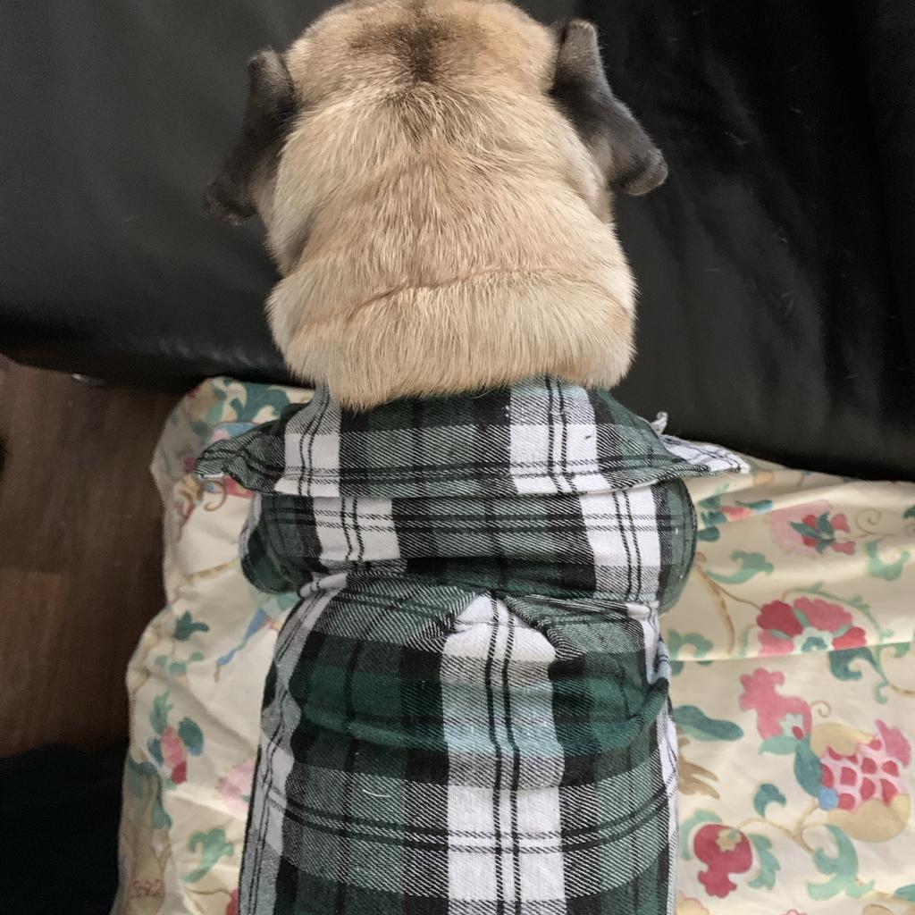 Bella maglietta, ma la XL è troppo piccola per un bulldog di 14 kg(((