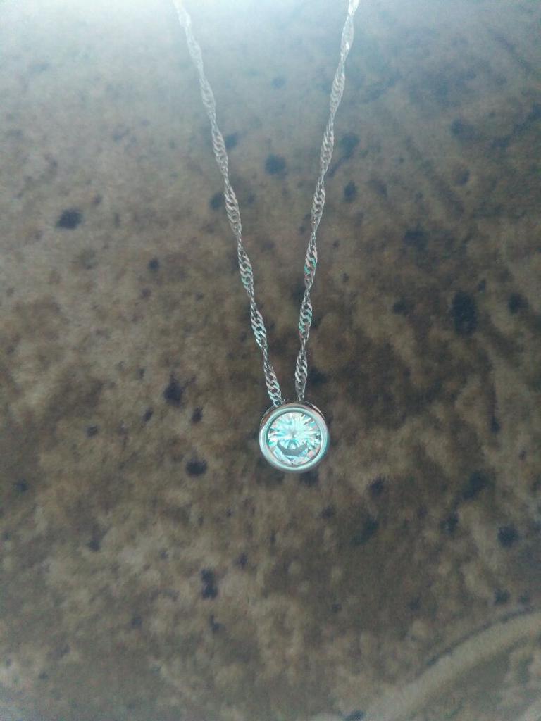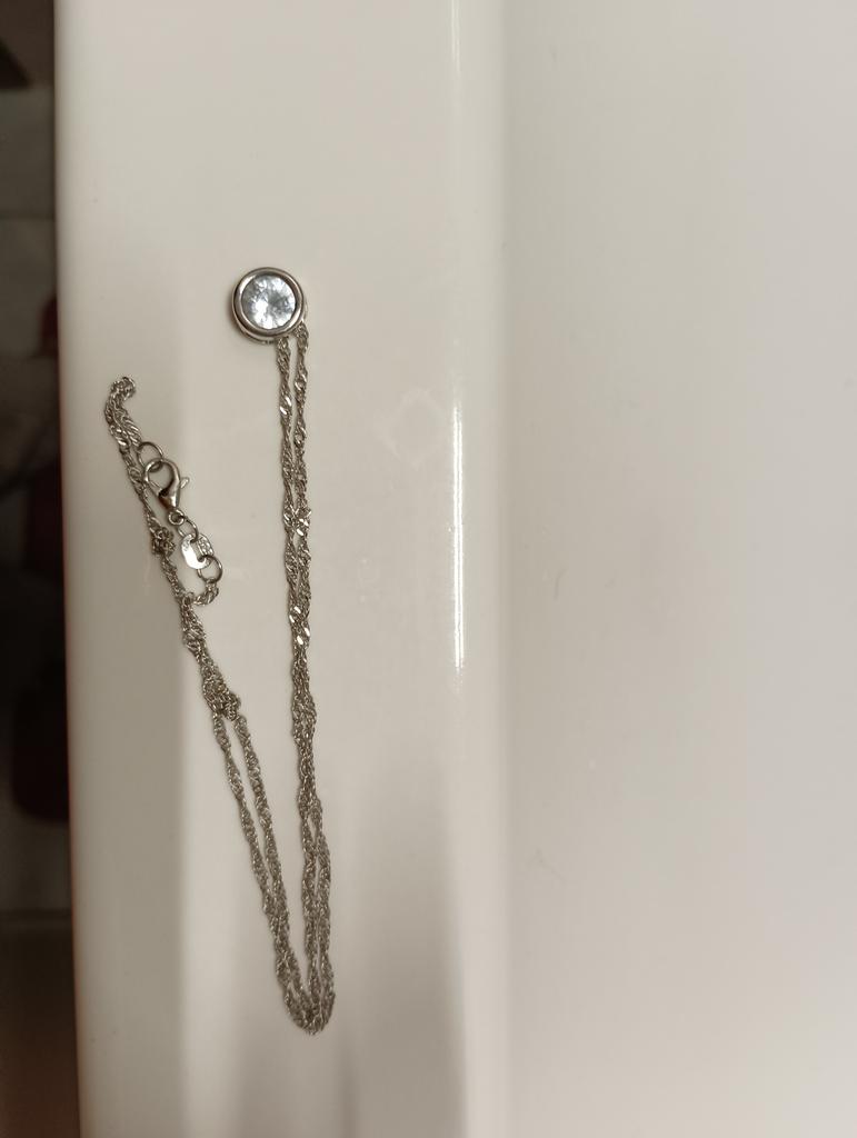 La collana in sé è bellissima,ho dato 3 stelle perché il ciondolo è incastonato nella plastica invece nella descrizione diceva ciondolo in argento.