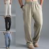 Pantaloni lunghi in lino e cotone da uomo Pantaloni casual dritti larghi taglie forti 4 colori