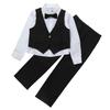 4 pezzi bambini ragazzo smoking gentiluomo abiti camicia a maniche lunghe + gilet senza maniche + pantaloni elastici in vita + nodo cravatta bowknot