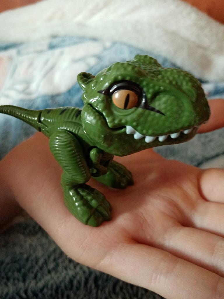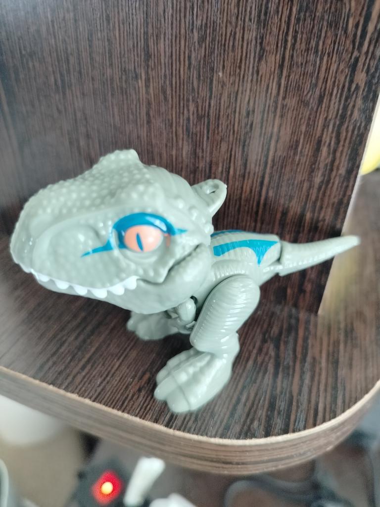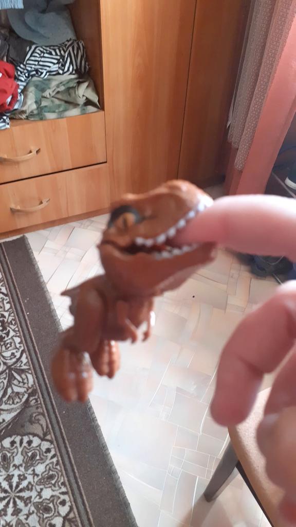 Questo è già il quinto dinosauro) Molto carino) L'ho ordinato per mio nipote. Lo consiglio. Le zampe e la coda si muovono, la bocca morde. Stabile.