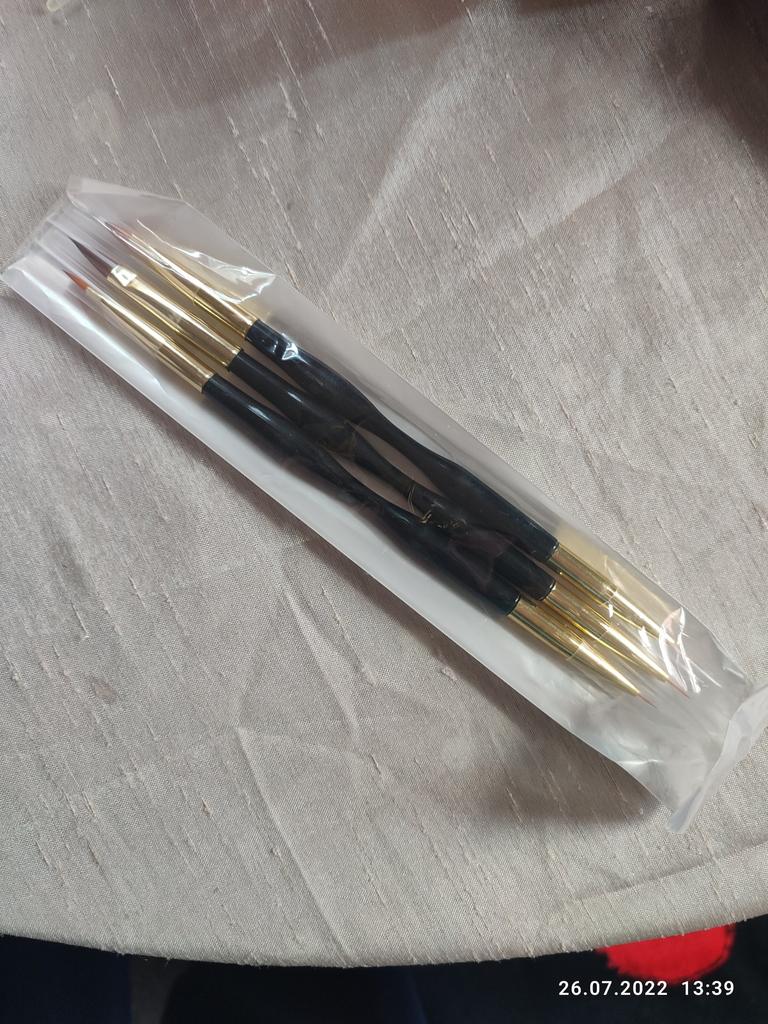 Pennelli molto buoni, disegno sottile, monogrammi, fiori.Sono affascinato da loro, mi aspettavo di peggio.Economico e facile da usare.