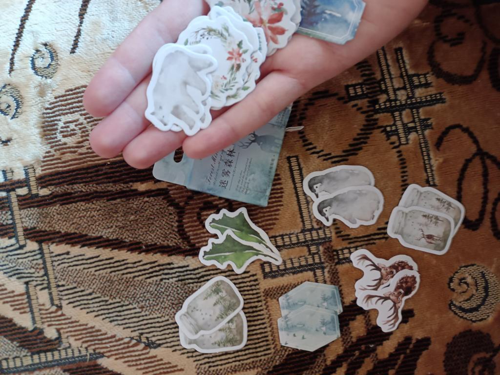Simpatici adesivi. Tre copie ciascuna, totale 45 pz. Il venditore ha anche messo un adesivo come regalo. Tutto è arrivato integro, senza danni. raccomando