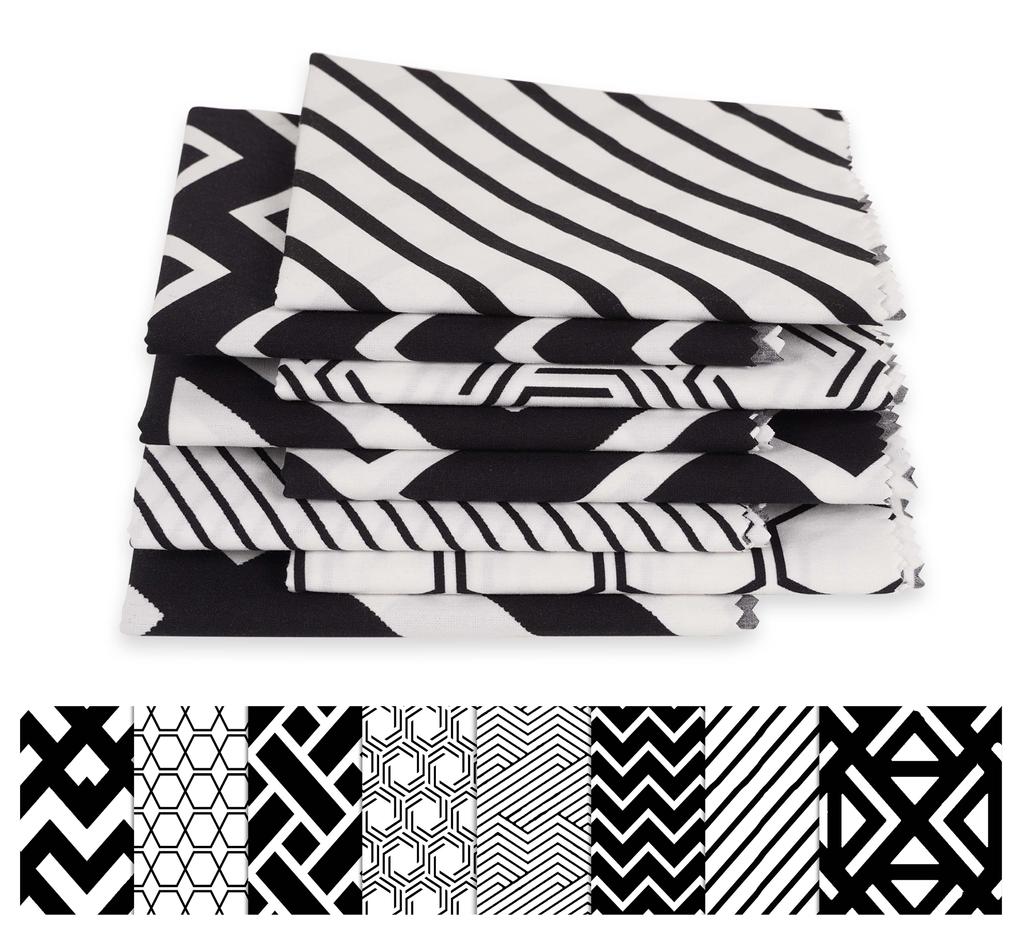 Soimoi Set da 8 Pezzi Fat Quarter - Stampa Geometrica 18"x 22" Patchwork Fai-da-te - 100% Cotone Pre-tagliato Tessuto per Quilting (Bianco &