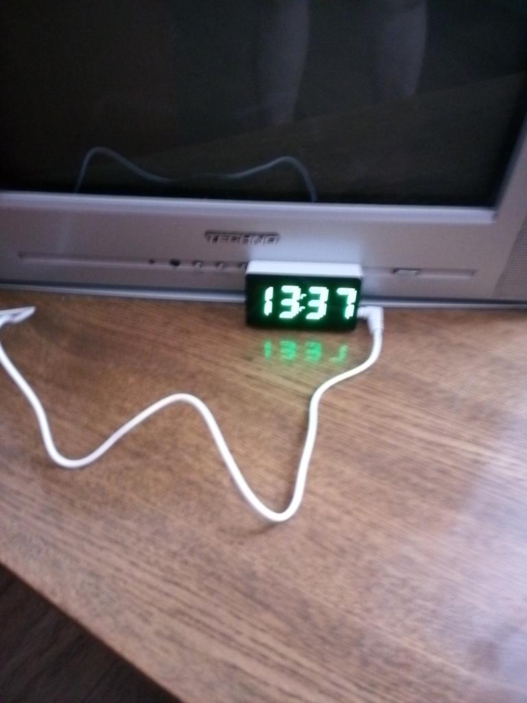 Bell'orologio. Compro non per la prima volta. Per il funzionamento aggiuntivo è necessaria una batteria RS2035 (responsabile della conservazione delle impostazioni) e un normale caricabatterie per telefono (responsabile della visualizzazione delle informazioni sullo schermo). Ci sono diverse impostazioni di funzionamento. Può mostrare alternativamente ora, data, temperatura. Si può impostare per visualizzare solo l'ora.