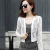 Cardigan corto traspirante da donna, estivo, sottile, a maniche lunghe, in chiffon, in pizzo, tinta unita