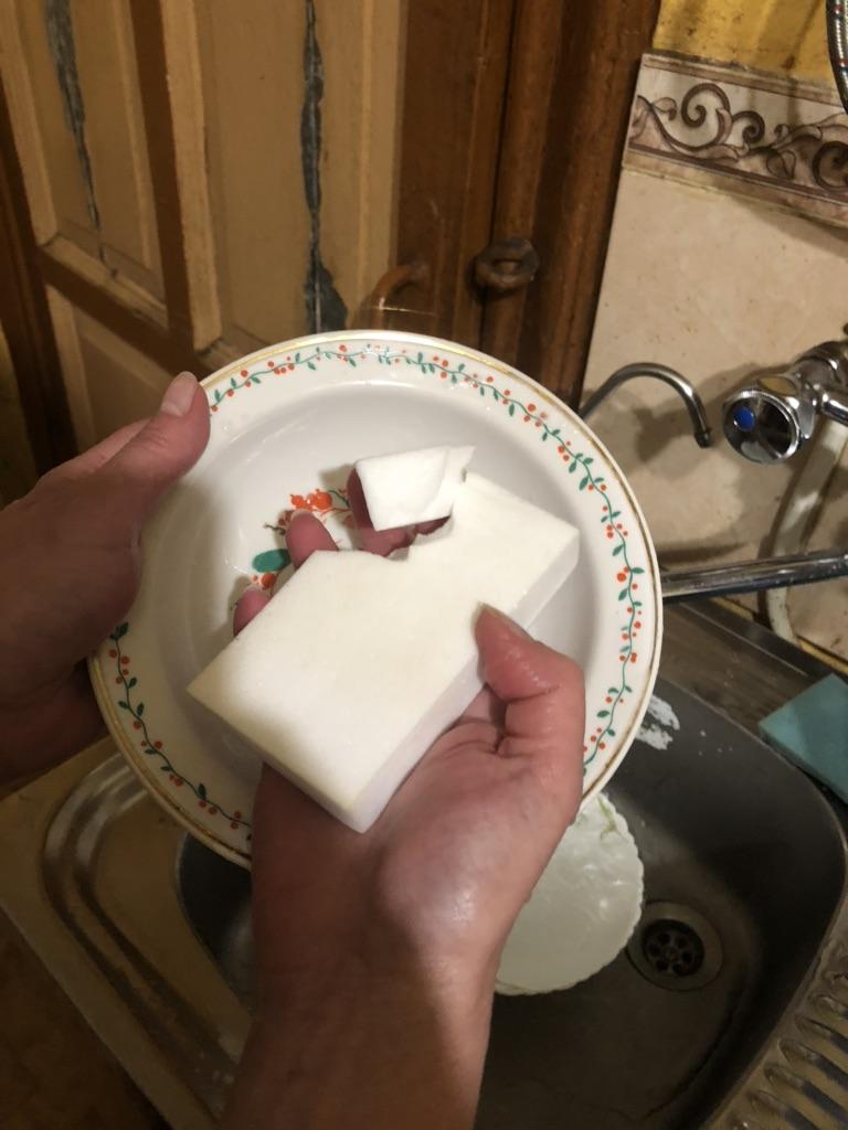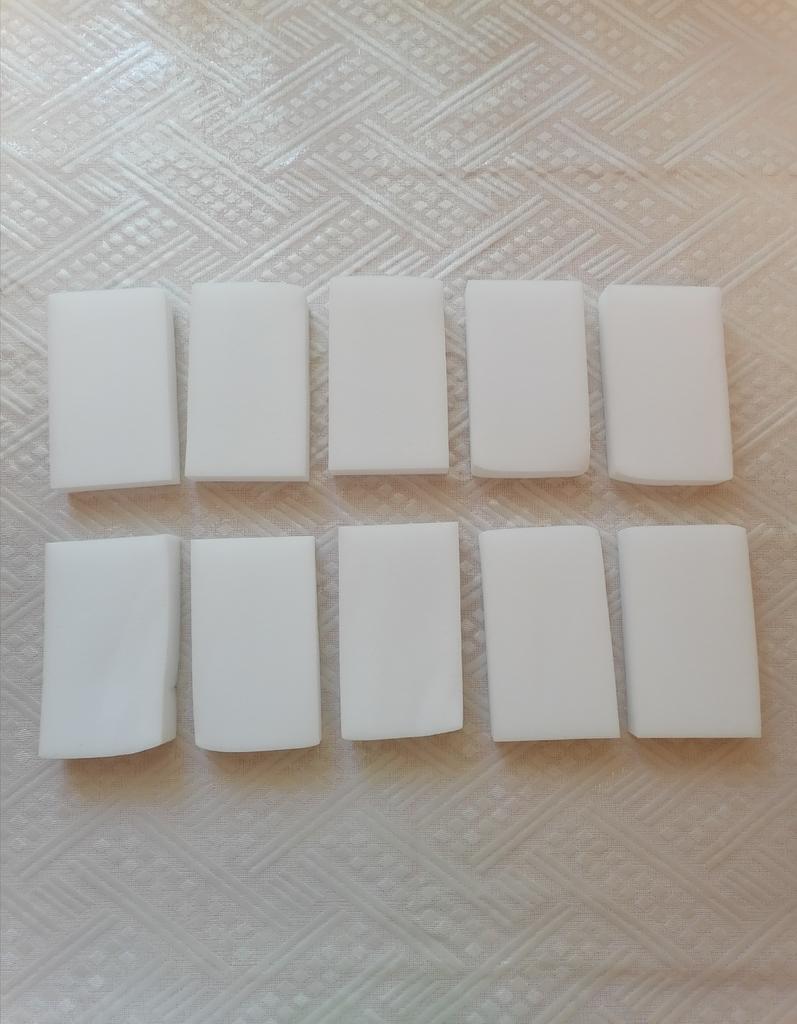 SPUGNE DI MELANINA . Ordino costantemente. Mi ci sono abituata molto. I miei insostituibili aiutanti. Cos'è una spugna in melamina. La spugna in melamina è un detergente sotto forma di blocchi bianchi. È composta da un materiale sintetico: la melamina. Questo composto di cloruro di cianuro e ammoniaca rimuove bene le macchie di varia origine (grasso, ruggine, calcare). Durante la fabbricazione della spugna, la melamina viene schiumata, saturata di aria e le vengono conferite proprietà abrasive. 💥 Ho ordinato un set di 10 spugne di dimensioni 100*60*20. 💥 Imballati in una busta postale. Arrivati in condizioni perfette. 💥 Le spugne rimuovono efficacemente le gocce di grasso indurito, il calcare, le tracce di ruggine, puliscono la suola bianca delle scarpe. Li uso più spesso a secco, senza aggiungere acqua. Una cosa fantastica. Più sicuro dei normali prodotti per la pulizia. Una volta provato, non potrai più farne a meno. Auguro a tutti solo acquisti fortunati🛍!💋💋💋