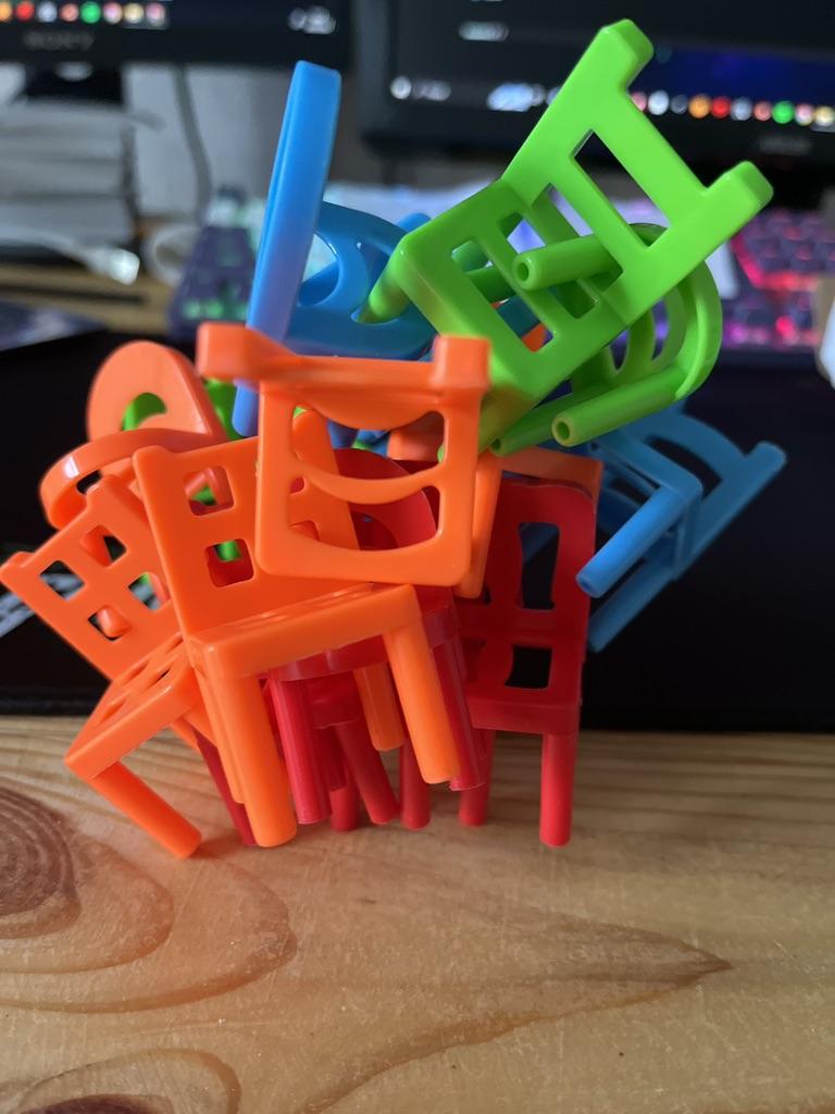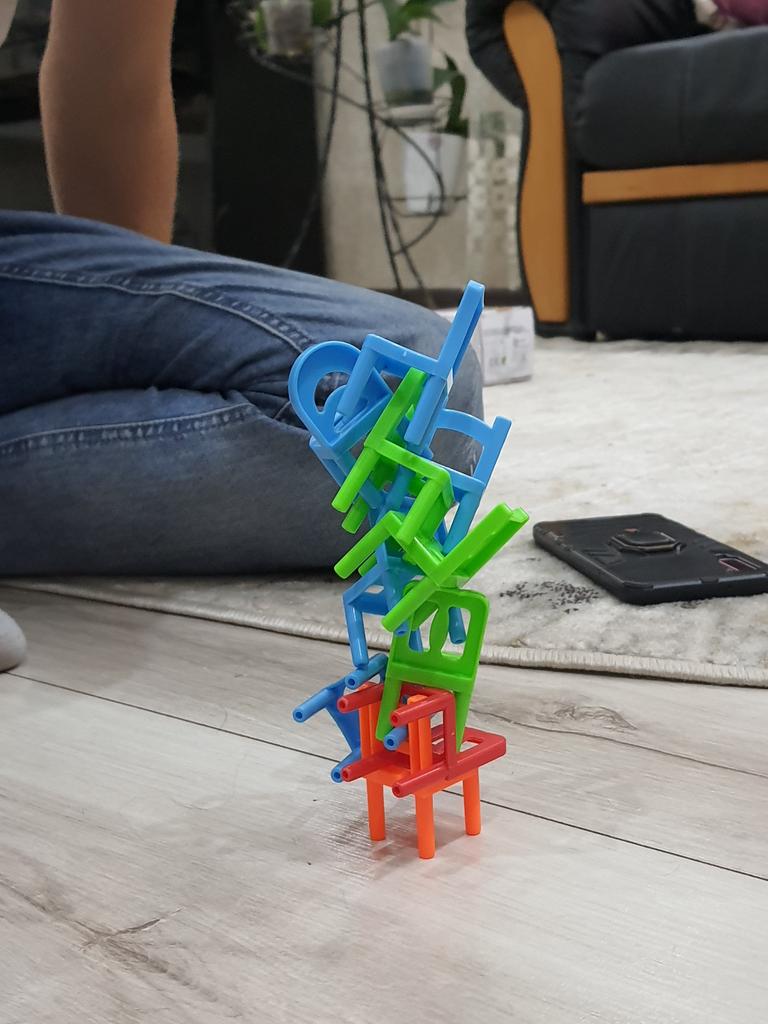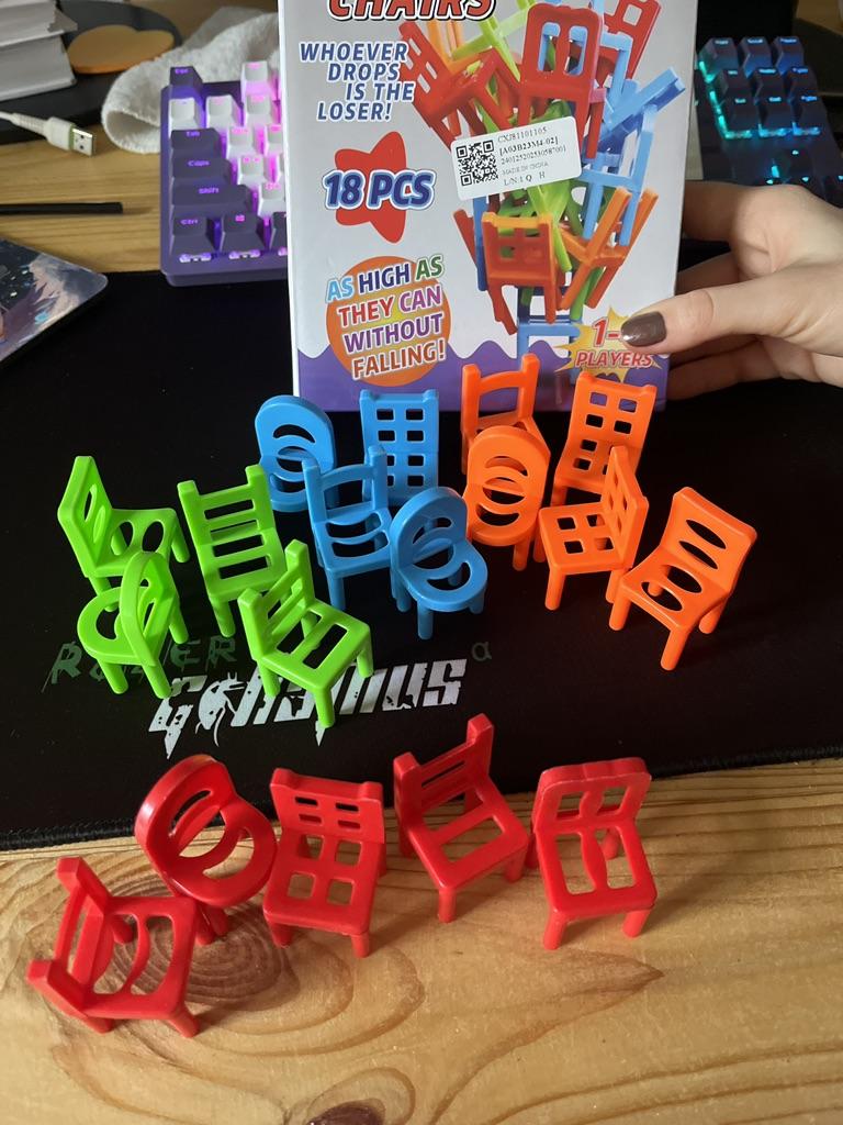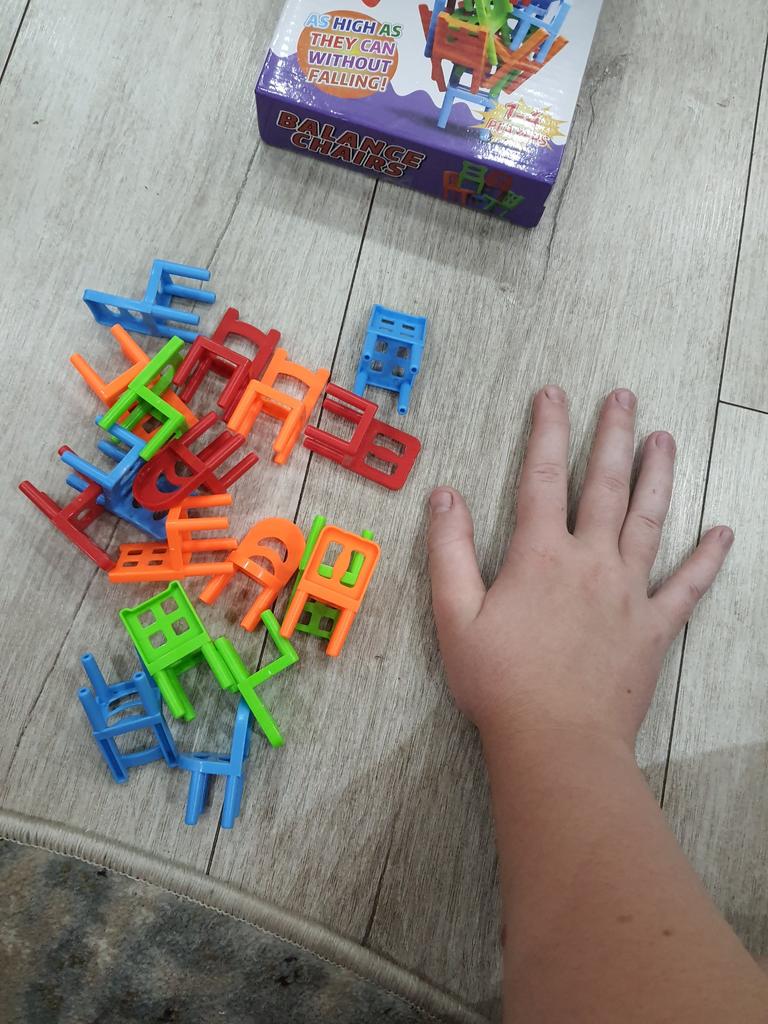 Sono molto soddisfatta dell'ordine, il gioco è molto interessante, le sedie sono piccole anche se pensavo fossero un po' più grandi, in ogni caso il gioco sembra più difficile di quanto sembri soprattutto perché bisogna bilanciare bene le sedie per non farle cadere, io dico che è un gioco interessante e divertente se si gioca con più avversari ma allo stesso tempo è buono e interattivo anche se si gioca da soli perché bisogna stare concentrati sull'equilibrio dei pezzi