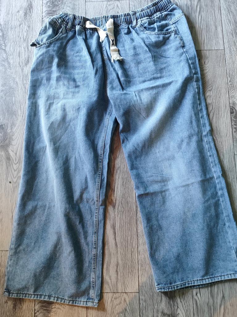 Bei pantaloni, ma non sono jeans, la parte superiore è tagliata come i pantaloni, con l'elastico. Il tessuto è sottile, estivo