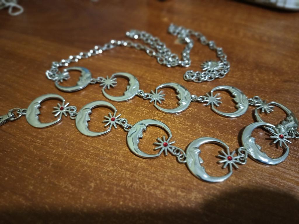 Cintura da donna in metallo stile vintage hip-hop punk con catena a forma di stella di luna. Cinturini per abiti da donna