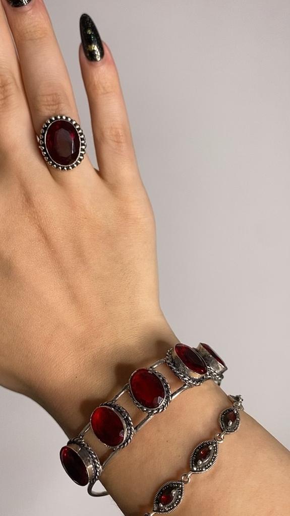 Bracciale rigido fatto a mano in argento sterling 925 con pietra preziosa granato del Mozambico regolabile — acquista al miglior prezzo sul negozio online Joom