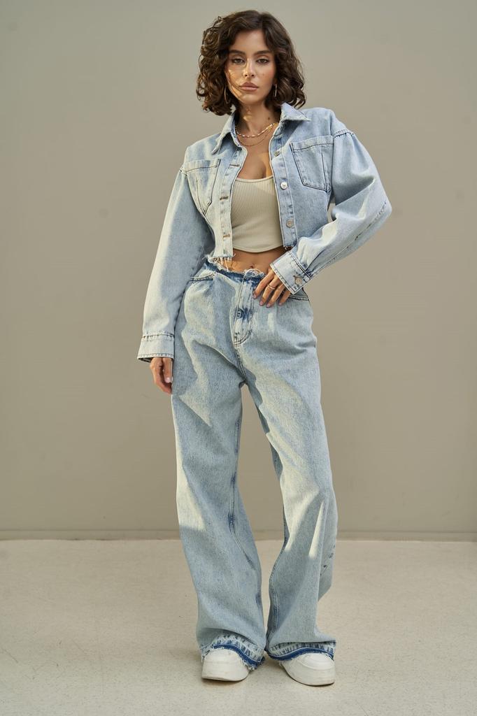 Giacca di jeans corta azzurra Darcey — acquista un prodotto online con la spedizione gratuita in tutto il mondo!