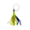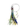 Esca da pesca resistente e di lunga durata realizzata con teste di pesce bianche e argento, piume colorate e colori vivaci.