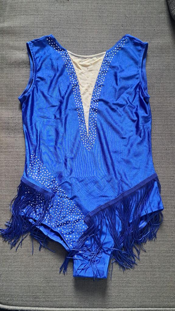 Body da bambina per pattinaggio di figura lucido, senza maniche, per ginnastica ritmica, con frange
