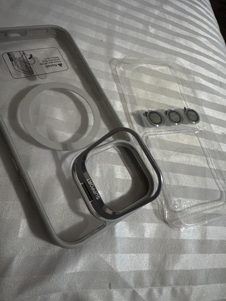 Bella cover per il tuo iPhone, arriva anche con 3 protezioni per la fotocamera (non ho dovuto ordinarle separatamente :-)) si adatta bene, sembra solida e ha anche un supporto per la fotocamera.