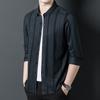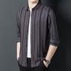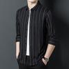 Camicia da Uomo Business Casual Primavera Tessuto Morbido Confortevole Traspirante Righe Rever