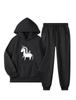 Girls Warm Thickened Fleece Comfy Cartoon Pattern Print Long Sleeve Hoodie Pullover Sweatshirts&Pants 2Pcs Sports Suit Outfits Kids Trendy Clothes Set