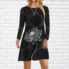 Abito Casual da Donna Autunno Abiti con Stampa Delfino di Cristallo per Donne Scollo O Manica Corta Abito Taglia Plus