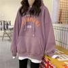 Women Letter Printed Hooded Sweatshirt Autumn Student Long Sleeve Loose Plush Pullover Hoodies Top