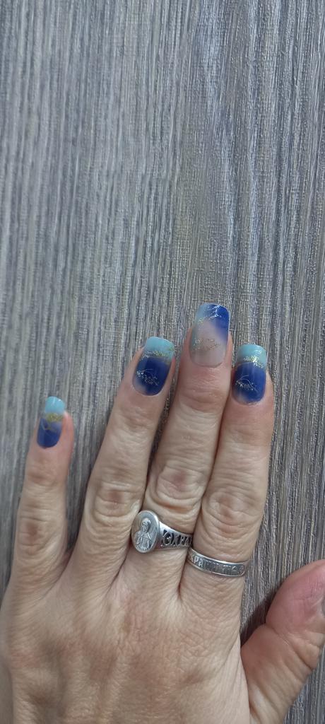 24 pezzi unghie finte quadrate medie lucide, unghie finte trasparenti blu ghiaccio con design a strisce in lamina dorata, 1 lima per unghie, 1 foglio bifacciale — acquista al miglior prezzo sul negozio online Joom