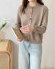 Temperament elegant round neck long sleeve soft waxy knitted cardigan women's autumn and winter new color single-breasted sweater jacket