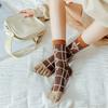 2 Pairs Five Finger Women Animals Cartoon Print Japanese Cute Socks Casual Plaid Floral Vintage Female Sock