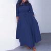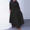 VONDA Women Autumn Loose Long Sleeve Round Neck Solid Color Dresses