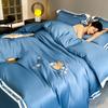 Set da letto in seta lavata, quattro pezzi, copripiumino ricamato di alta qualità in seta di ghiaccio, set da tre pezzi