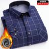 Camicia a maniche lunghe a quadri da uomo con pile ispessito, casual, business, elastica, non stirabile, calda, per gli anziani