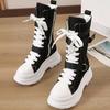 Spring and Autumn Tall Sneakers Women Shoes Canvas Casual High Top Shoes Long Boots Lace-Up Zipper Comfortable Flat Boots