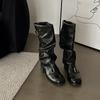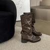 - 39-48 Retro Style Knight Motorcycle Boots Men High Quality Leather Splicing Western Cowboy Boots Man Platform High Top Footwear