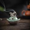 Chinese Lion Statue Incense Holder Stick Burner Porcelain Miniature with Round Tray for Yoga