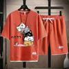 2024 Men's Summer Waffle Set Brand Fashion Casual T-shirt+Shorts Set Men's Sports Set Loose ComfortableSlo Two-piece Set