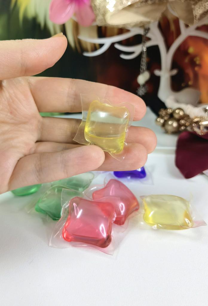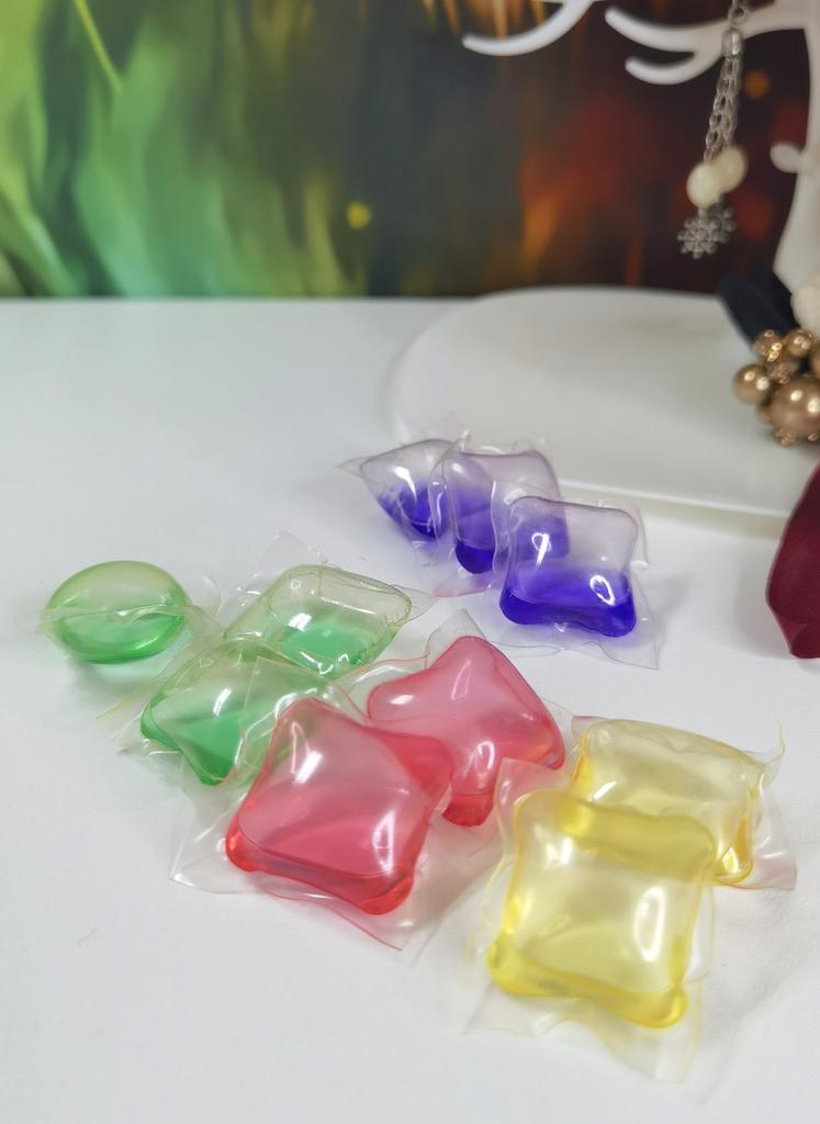 Capsule per lavare i vestiti 10 pezzi Gel detergente all'interno delle capsule Per il lavaggio sono necessarie 2-3 capsule Lavarsi bene, avere un buon profumo L'odore non dipende dal colore della capsula