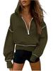 Felpa con cappuccio corta da donna alla moda a maniche lunghe con scollo a V monocolore e taglio ampio — acquista al miglior prezzo sul negozio online Joom