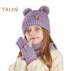 Kids Winter Hat Gloves Scarf Set Cold Weather Knitted Bear Hat with Pom Fleece Lined Neck Warmer Mitten Set for Girls Boys Ages 4-10 Outdoor