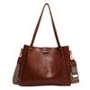 Commuter splicing oily leather underarm women's bag 2024 winter new European and American retro fashion tote bag large capacity shoulder bag