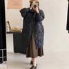 White duck down long down jacket women's 2024 winter new fashion stand-up collar diagonal plaid warm knee jacket tide