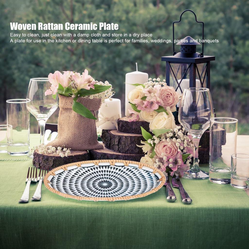 Woven Rattan Ceramic Plate Oval Woven Rattan Porcelain Fruit Plate for Wedding Party Banquet Birthday Woven Rattan Ceramic Plate — acquista al miglior prezzo sul negozio online Joom