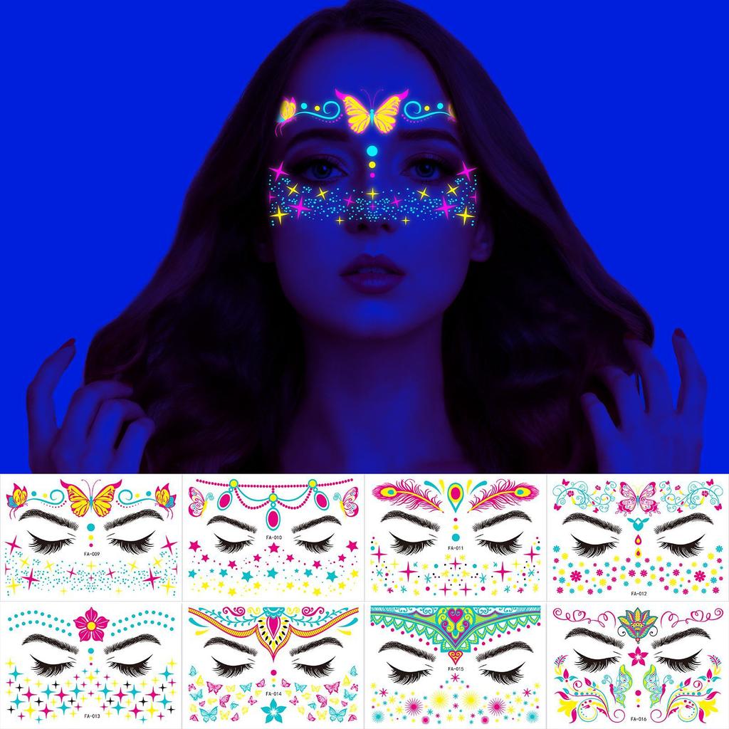 Nightclub Masquerade Ball Neon Fluorescent Face Sticker, Waterproof Music Festival Glowing Tattoo Sticker — acquista al miglior prezzo sul negozio online Joom