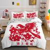 Chinese Culture Style King Queen Duvet Cover Festive Red Bird Dog Bedding Set New Year Comforter Cover Polyester Quilt Cover
