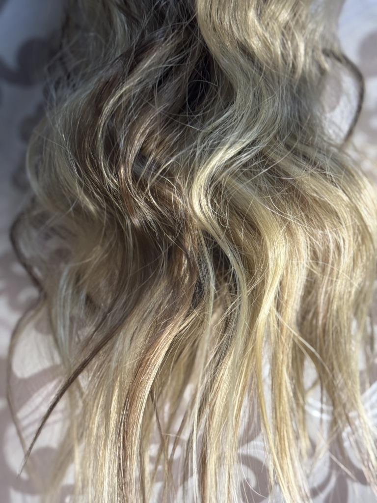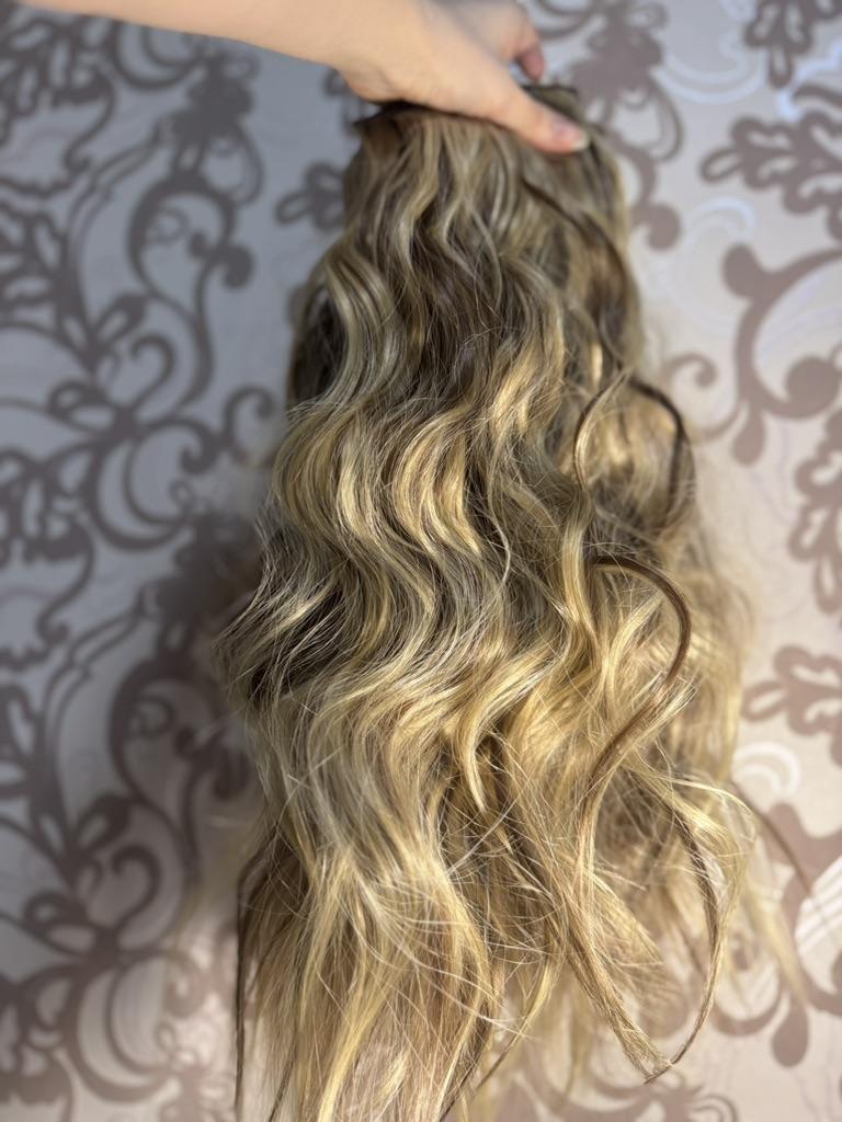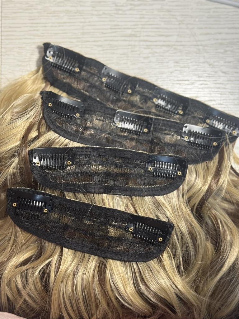 Capelli con mollette ✨ Un colore piuttosto interessante, ma è più chiaro con inclusioni scure, piuttosto che il contrario) Ma sembra comunque piuttosto bello. - Forcine molto resistenti, tengono bene e sono facili da attaccare ai capelli; - Una quantità piuttosto grande di capelli, il volume è davvero buono anche con due forcine su quattro; - Il set comprende quattro cuscinetti di diverse larghezze: il più grande con quattro perni, uno con tre e due con due; - L'onda non è male, sembra abbastanza naturale (per quanto possa esserlo per i capelli artificiali)