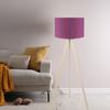 Pratik Ahşap Krem Üç Ayaklı Lambader Krem Kumaş Başlık Salon Yatak Odası Okuma Köşe Lambası