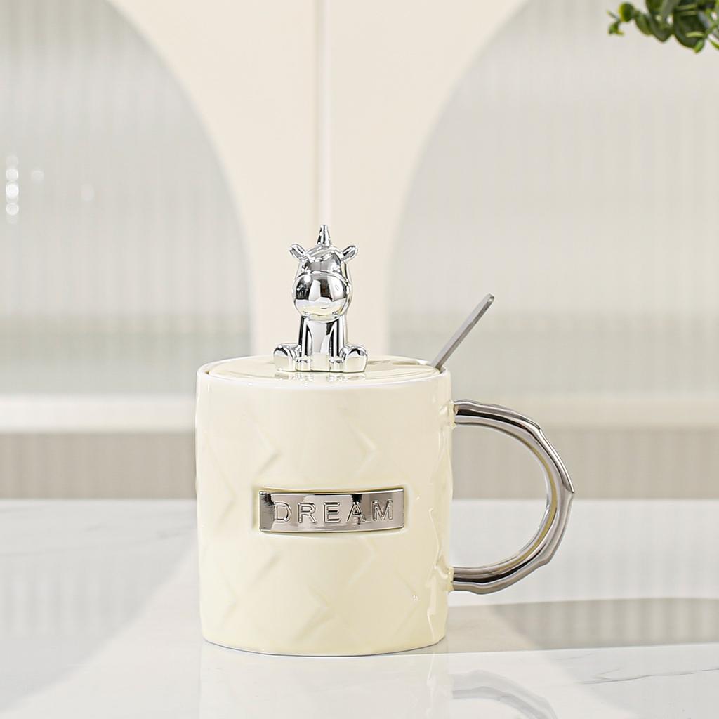 Tazza in ceramica con coperchio e cucchiaio, tazza unicorno, regalo souvenir di alto valore, tazza per studenti