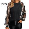 Top da donna, girocollo, in rete, a sbuffo, a maniche lunghe, tinta unita, versatile, stile camicetta